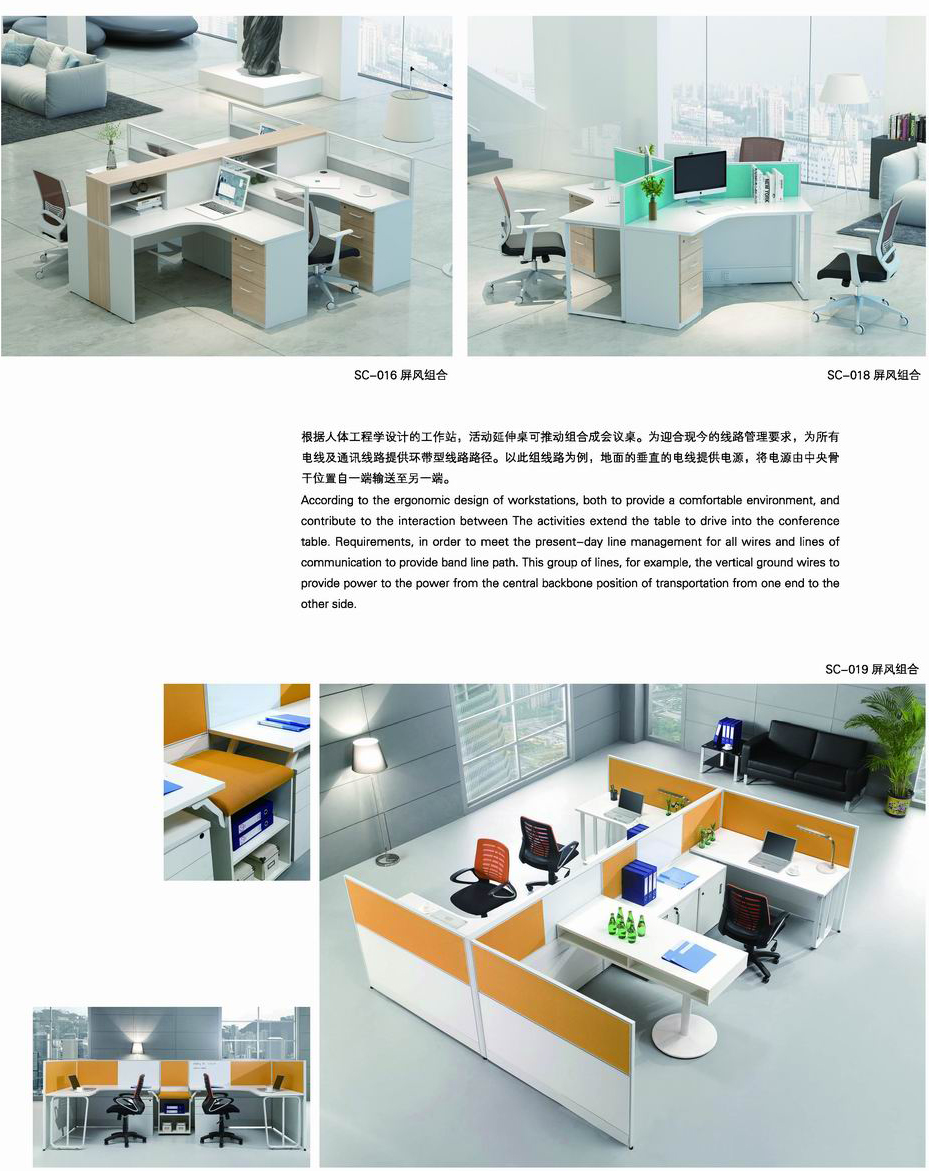 厚薄结合,实现了功能与合用的谐和统一,厚屏规模布线,薄屏轻巧实用,强大的吊挂功能使办公间向空间发展成为可能完美演绎人性设计自主空间。
